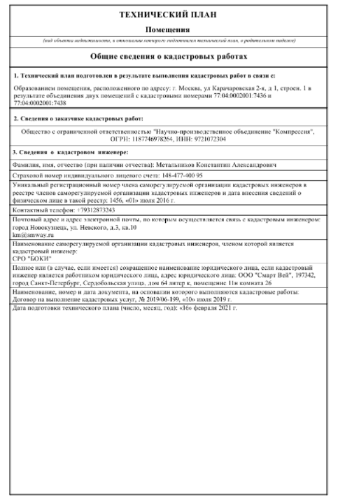 После завершения перепланировки специалисты ООО «Смарт Вэй» в течение 5 рабочих дней оформили технический план на вновь образованное помещение. Перечень этапов для оформления технического плана: