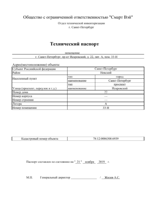 Заказчику был передан комплект технической документации. В него вошли поэтажные планы, ведомости помещений, технический паспорт.