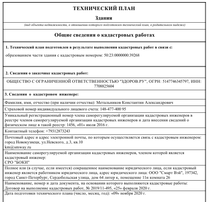 По итогу обследований и обмеров кадастровыми инженерами ООО «Смарт Вэй» был изготовлен технический план.