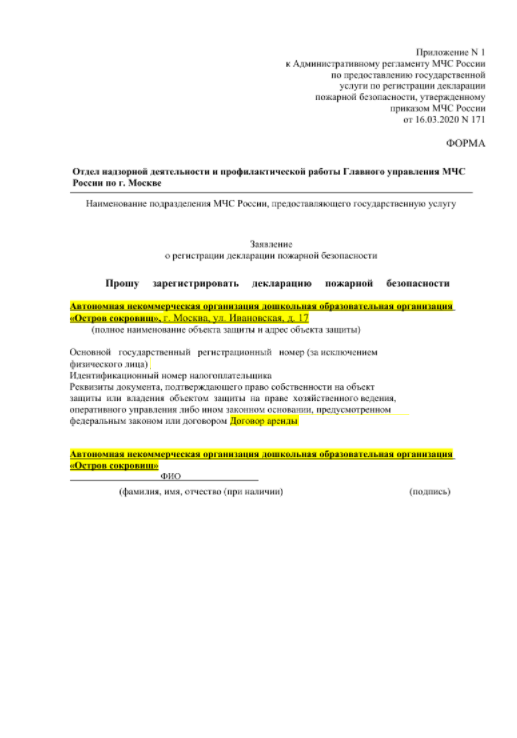 - разработали декларацию пожарной безопасности;