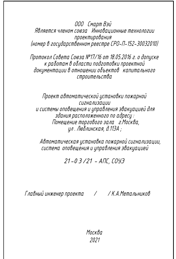По итогам работы специалисты ООО «Смарт Вэй» оформили проект на системы противопожарной защиты АУПС, СОУЭ. Все документы были оформлены и переданы заказчику в течение 3 рабочих дней.